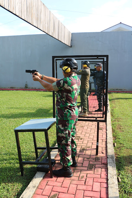 Sigerindo Bengkulu-Kasrem 041/Gamas Kolonel Inf Veri Sudijanto Sudin, S.I.P., M.Si mengikuti Latihan Menembak Eksekutif bertempat di lapangan Tembak Lanal Bengkulu, Kamis ( 23/6/2022 )